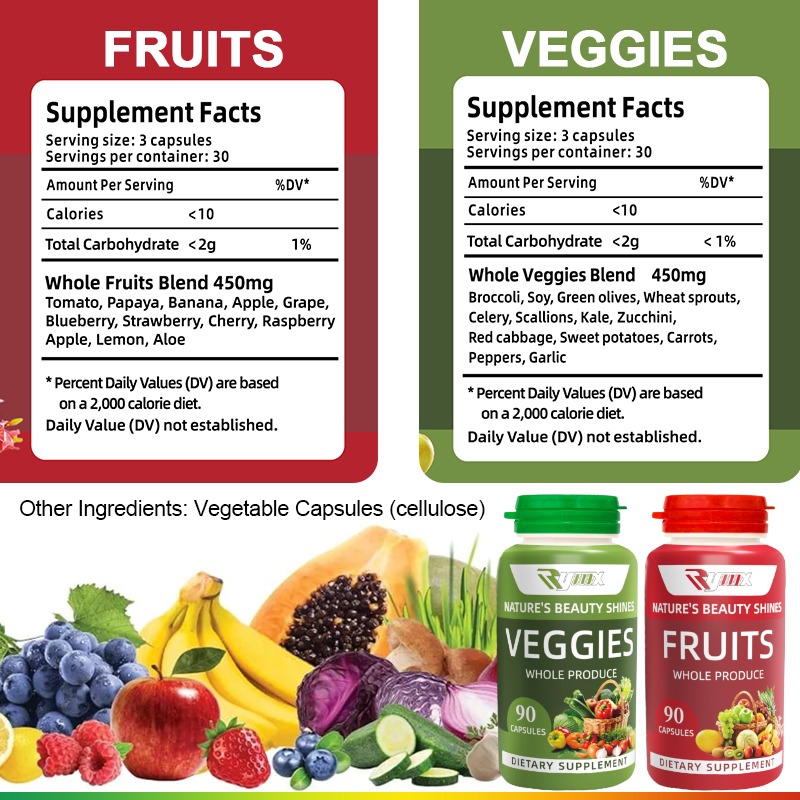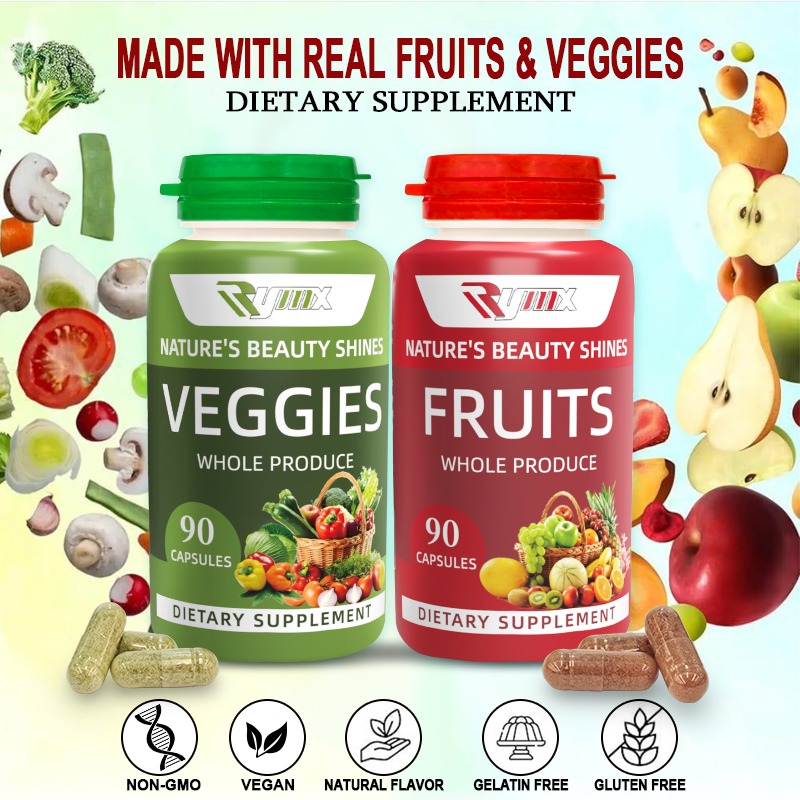 fruits and veggie supplementsRYMX Fruit & Veggie Energy Boost Supplement – 2 Pack | 90 Fruit & 90 Veggie Capsules | Whole Food Superfoods | USA-Made | Soy-Free, Vegan-Friendly